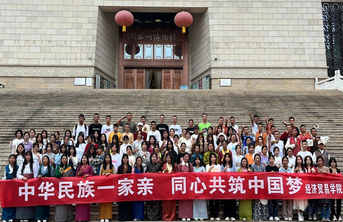 2023年9月19日湘西民族职业技术学院经济贸易学院组织汉族、土家族、苗族、藏族、白族等各民族100多名学生到湘西州博物馆进行参观学习,旨在让学生了解湘西地区民族文化发展史、红色革命典型事迹及民族团结进步的重大意义。下午14:00在经济贸易学院余雄老师、杨晓青老师及经济贸易学院自管委学生干部的带领下,准时来到湘西州博物馆。![]()