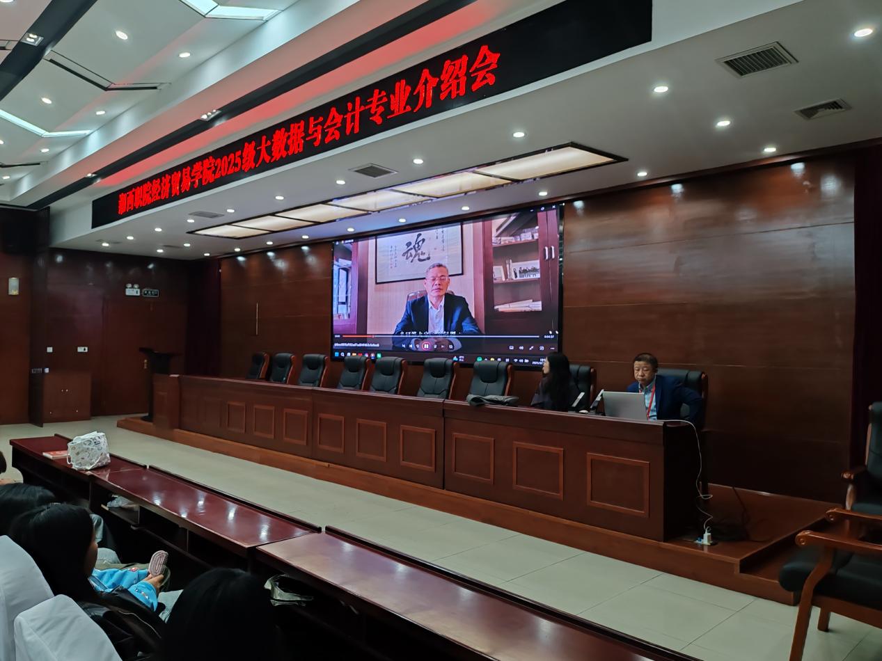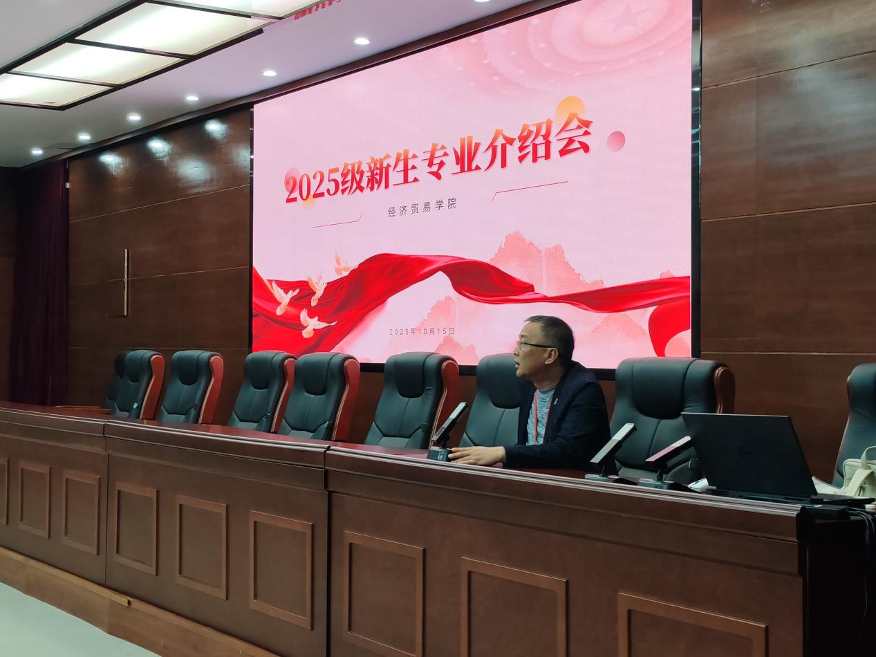 为帮助2025级新生全面了解所学专业,明确学习目标,科学规划大学生涯,10月15日晚,经济贸易学院在D区报告厅及B104教室成功举办了以“认识专业·规划未来”为主题的新生专业介绍会。学院领导张明星院长、钟伟书记、彭艳兰副院长、李君阳科长、贺辰衎科长各专业教研室主任、班导师及全体新生共同参加了本次活动。